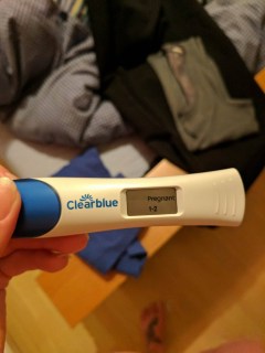 A few weeks had passed and we decided that we were going to start trying. We had only been in our home a month and we were trying for a tiny blob, half him, half me. Are we mad?! I thought about that often and came to the conclusion that we have been for rather a long while. The consultant arranged a repeat blood test in a months time to see where I was at. In the mean time, we tried to relax and take life for what it is, and have fun along the way of course. I remember waking up at 5:30am one morning and just feeling totally off, almost like I wanted to be sick. I was 10 days post ovulation by this point so I decided to do a test. 2 lines. 2 faint pink lines. SHIT. Can it be?! I mean, we’ve only been trying for 3 weeks?! Digital. I needed to take a digital. There I am flailing around in the bathroom trying not to wake Chris up, but trying to see if my eyes are just playing tricks on me. The little cup of piss I had, now all over the floor. CRAP!! Sitting on the loo with this stupid cup under my flange trying to desperately squeeze out another bit of wee to do a digital. Luckily i manage it. The test was done – “Pregnant 1-2”. Oh, my god. I could hardly believe my eyes! I went and jumped on Chris woke him up and we had the biggest cuddle. Although I was slightly pissed off it was Christmas day in 5 days and I could now, no longer have a drink or eat Pate!